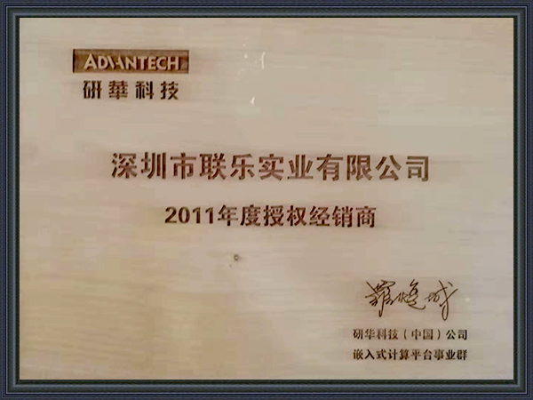 聯樂實業-研華科技經銷商證書2011