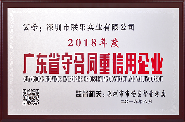 聯樂實業-廣東省守合同重信用企業2018